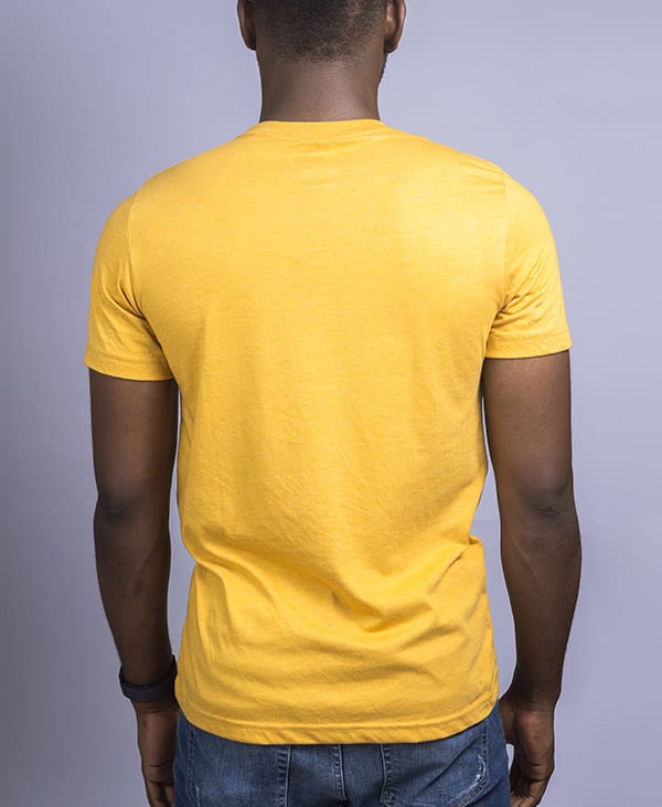 Super-soft fitted Heather Mustard unisex t-shirt with single colour screen printing. Made with pre-shrunk ring-spun cotton. Features a set-in cover-stitched neck and double-needle stitching on the sleeves and hem.